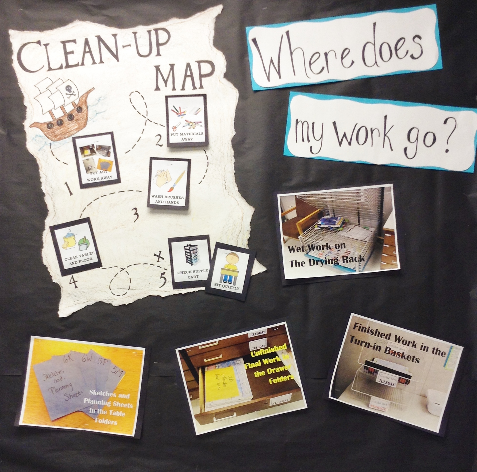 A couple of summers ago, I took the Managing the Art Room course from AOE. It really helped me brush up my management skills, and introduced me to Clean-Up Maps and visuals for routines. So helpful!